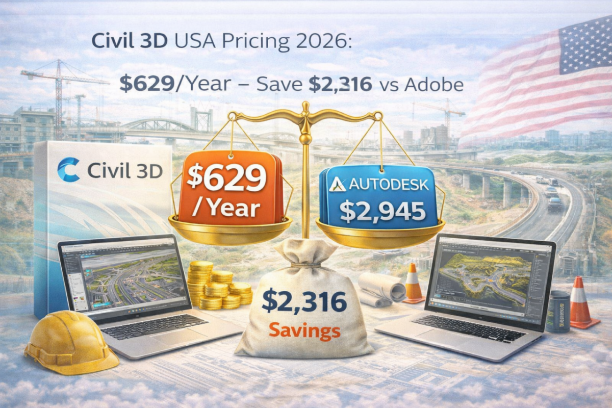 March 24, 2026Published by digitalicence on March 24, 2026Categories Software Buying TipsCivil 3D USA Pricing 2026: $629/Year Commercial – Save $2,316 vs AutodeskCivil 3D remains one of the most important Autodesk tools for infrastructure, site development, grading, utilities, and transportation design in the United States. It is widely […]